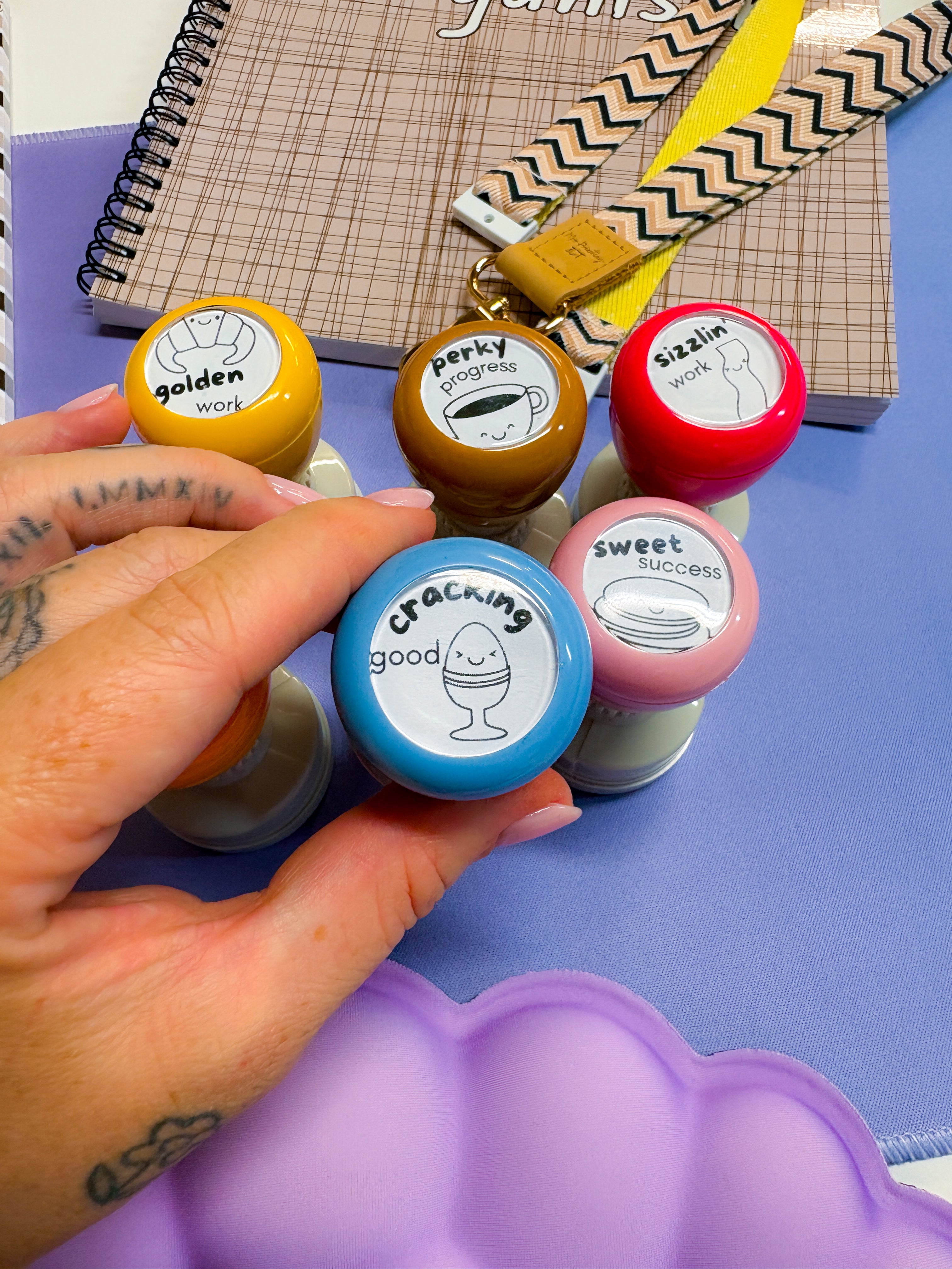 This cute 'cracking good' stamp is a limited design run of stamps from the Mrs Priestley ICT Brunch Blend stamp collection. If your students love puns, this is another cute one to add in!