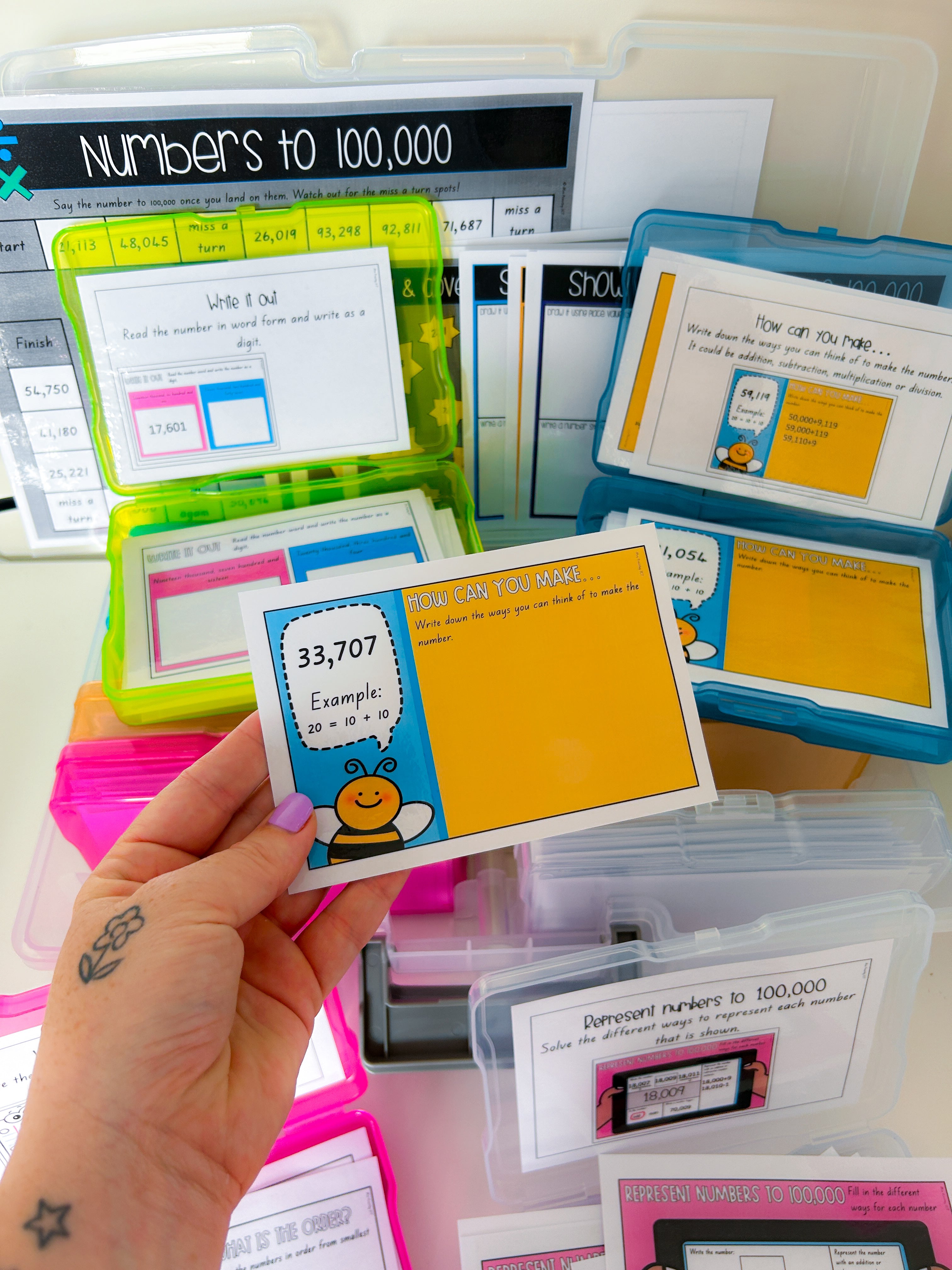 This pack is perfect for helping your students understand, build awareness and skill with number concepts to 100,000. This pack can be used for follow up activities, hot spots, independent activities and even for targeted teaching. It covers a wide range of learning concepts to reinforce ideas around numbers to 100,000.